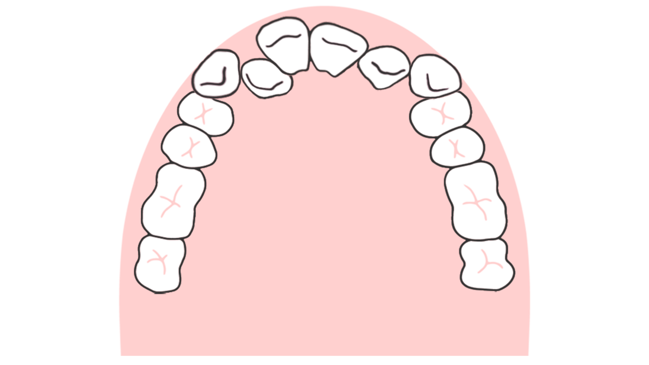 小顔であごが小さい方は、歯がきれいに並ぶスペースが足りません。狭いスペースに無理矢理歯を並べるため、互い違いに生えたり、外側に押し出されてしまうのです。