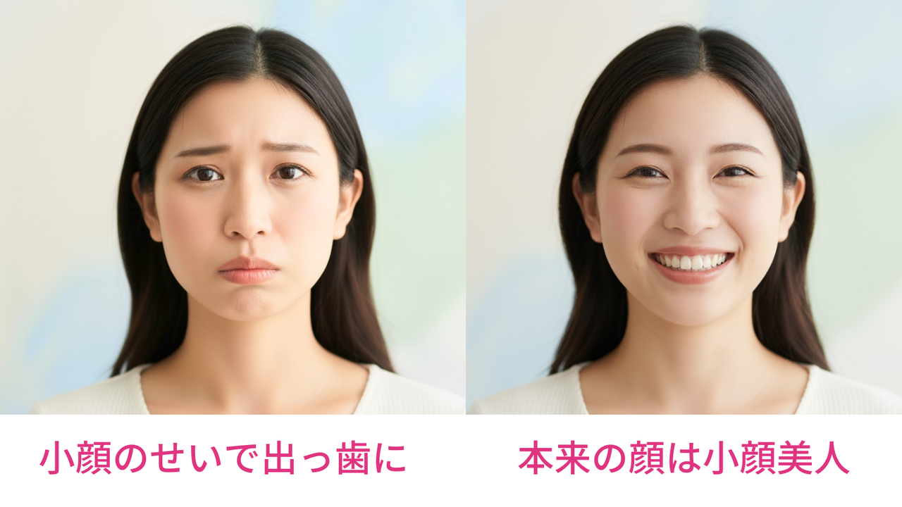 本来は美人の条件である小顔のせいで、歯並びが悪くなってしまったという状況。