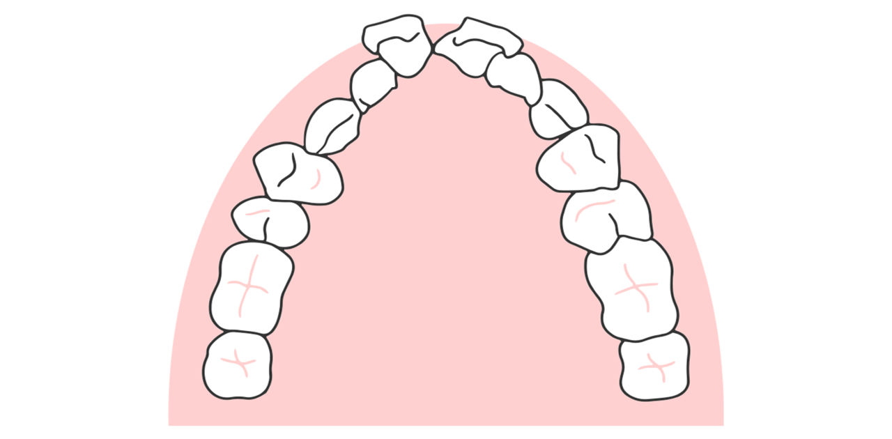 無理矢理、狭いスペースに歯を並べるため、前歯が前方に押し出されて出っ歯になってしまうのです。