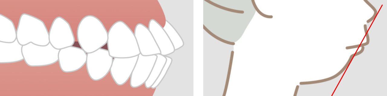 奥歯が斜めに傾いて前歯を押し出していると、前歯を引っ込めるスペースがありません。