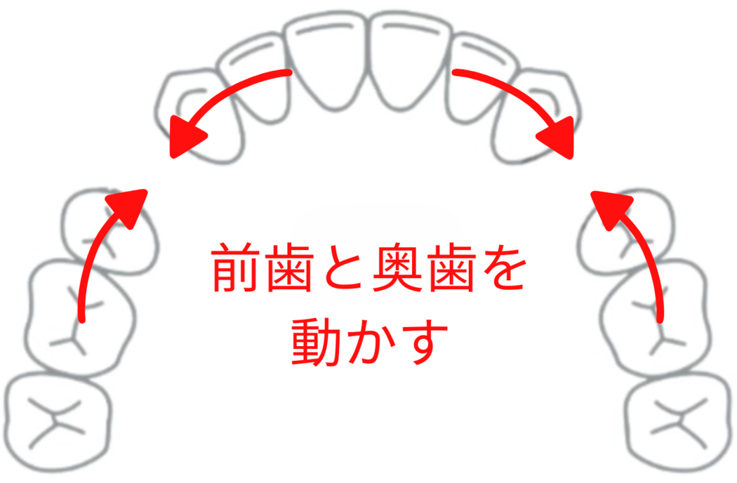 しかし抜歯後のすき間を埋めるためには、前歯だけでなく、奥歯も動かさなければいけません。