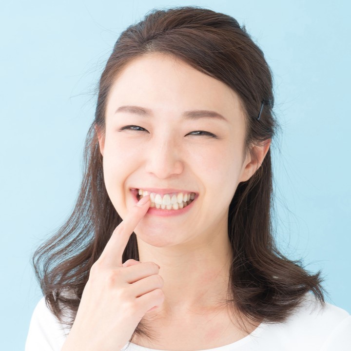 歯が重なり合っている部分は歯ブラシの毛先が届きにくく、汚れ(歯垢)が溜まりがち。