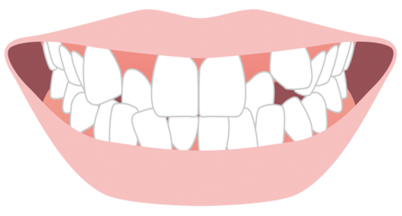 また、歯と歯が複雑に重なり合うため食べ物が詰まりやすく、歯磨きもしづらいため、口臭が出やすい、虫歯や歯周病にかかりやすい、といった弊害もあります。