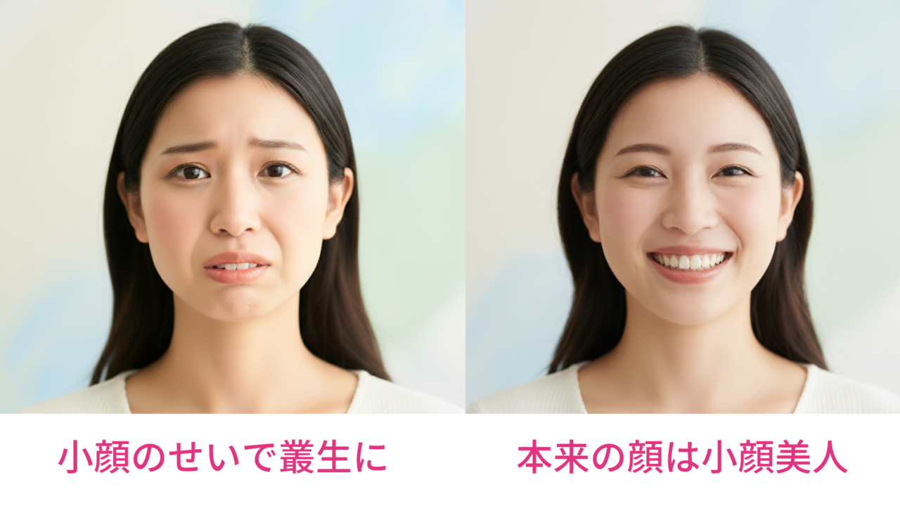 つまり本来は美人の条件である小顔のせいで、歯並びが悪くなってしまったという状況。