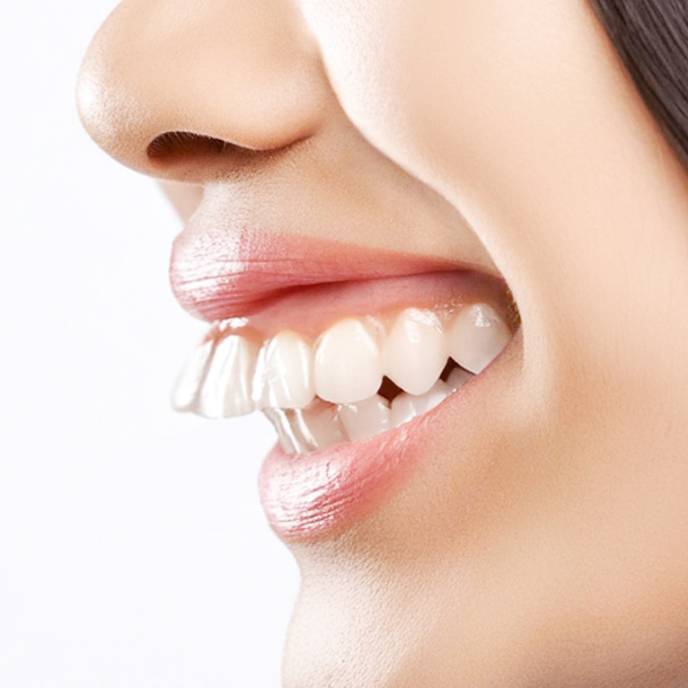 従来の金属を使ったワイヤー矯正に比べると、矯正装置が透明で目立たない点、痛みが少ない点が好評の歯科矯正です。