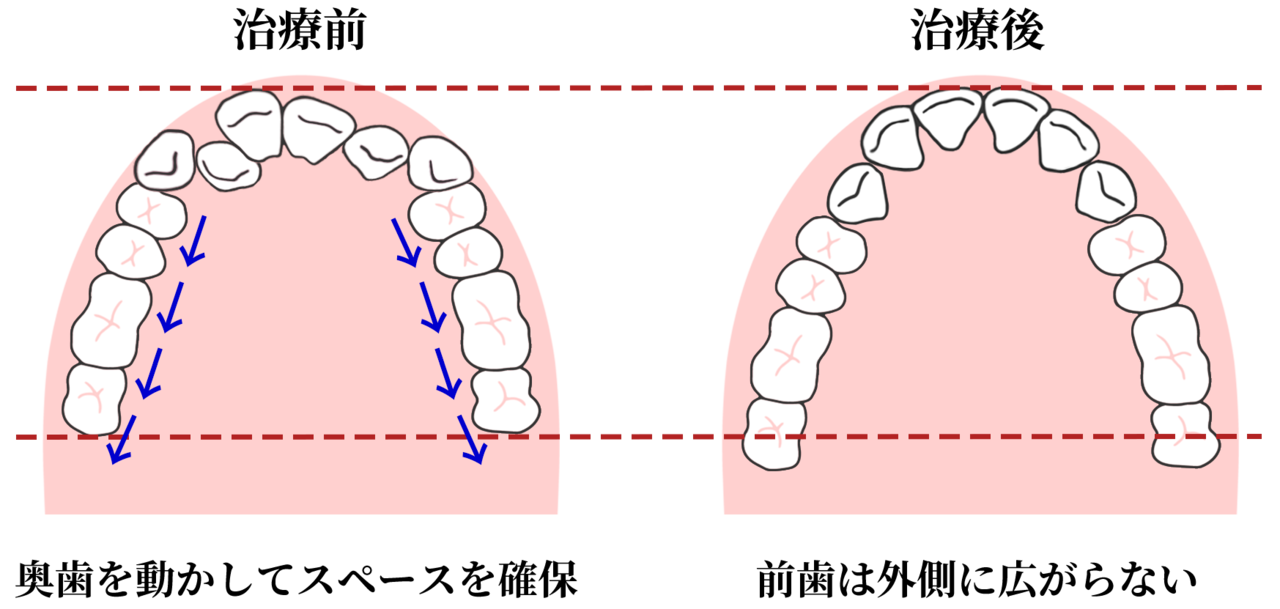 しかし小顔であごが小さいために歯並びが悪くなっている場合、前歯だけの矯正法では、治療後に出っ歯や口ゴボのになってしまう危険性があります。