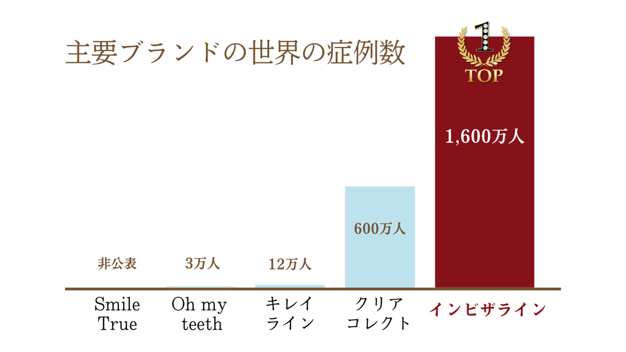 このようにブランド毎に症例数は様々。症例数の少ない後発ブランドはシェアをとるために、価格をかなり安くすることが多いようです。(格安矯正)