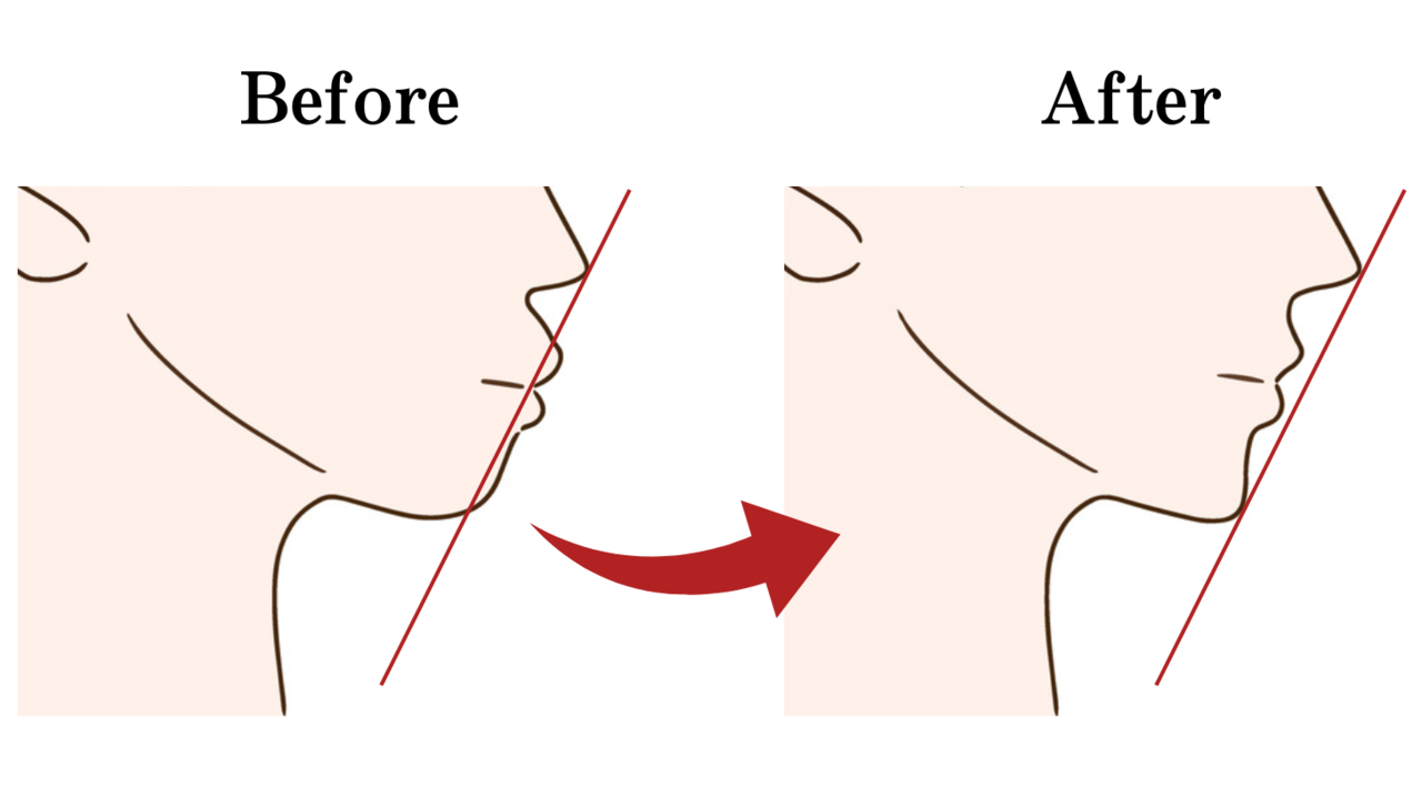 Eラインとは鼻先と顎の先端を結んだラインのことで、このEラインの内側に唇があると美しい横顔と見なされます。